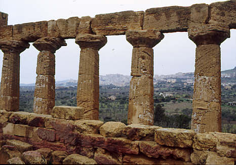 Nordliche Peristasis mit Blick auf die Häuser der modernen Stadt.