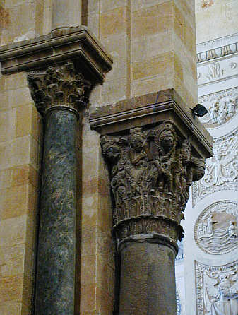 Reich skulptierte Säule am Triumphbogen zwischen Vierung und Langhaus