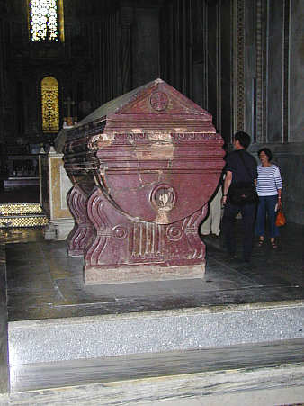 Grab Wilhelms I. Der Normannenkönig Wilhelm II. (1166 - 1189) plante den Dom auch als Grablege für seine Dynastie. Sein Vater Wilhelm I. (115 - 1166) ruht in einem Porphyrsarkopag, der die Ranggleichheit mit den byzantinischen Kaisern betont.