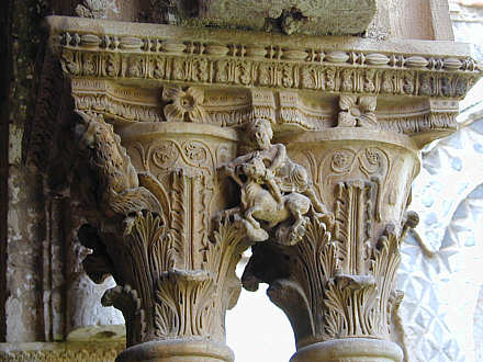 Kapitell: Tötung eines Stiers, möglicherweise eine Aufnahme des antiken Mithras-Motivs