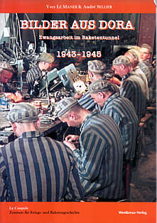 Yves le Maner, André Sellier: Bilder aus Dora. Zwangsarbeit im Raketentunnel 1943 - 1945. Aus dem frz. von Waltraud Gros. Herausgeber für die deutsche Ausgabe: Dt. Museum München. Bad Münstereifel: Westkreuz-Verlag, 2001 88 Seiten, DM 34,-. ISBN 3-929592-59-2 |