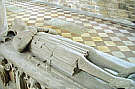 Ein stolzer Ritter in seiner RüstungRitter Georg Sack, gestorben 1483, in der ehem. Klosterkirche von Heilsbronn, Mittelfranken. Aufwendig gearbeiteter Harnisch mit Schwebescheiben, Rüsthaken