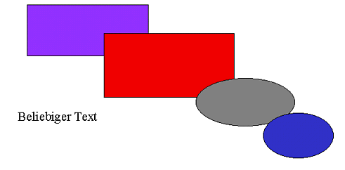 | Setzen Sie auf eine leere Folie zwei Rechtecke, zwei Kreise und ein Textfeld mit beliebigem kurzen Text | ||||