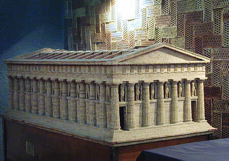 Modell des Zeus-Tempels mit dem Versuch der Wand-Rekonstruktion im Archäologischen Museum