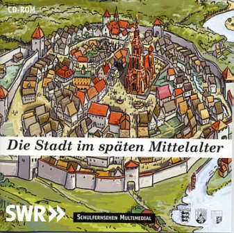 Eintauchen in die Welt des Mittelalters verspricht eine multimediale Produktion des SWR, die 2002 auf den Markt kam, "Die Stadt im späten Mittelalter". Der Benutzer kann sich auf einer Stadtansicht orientieren und die Stadt mit ihren typischen Bestandteilen virtuell betreten. An fast allen Stationen - Marktplatz, Rathausplatz, Kirche, Kloster, Stadttore - erlauben Rundumschwenks einen detailgetreuen Einblick in die Lebenswelt des 15. oder 16. Jahrhunderts, unterlegt mit den entsprechenden Geräuschen, ob dem grunzen von Schweinenoder dem Furz in Ehgraben. Personen des städtischen Lebens geben Auskunft über ihre besondere Stellung und ihre Tätigkeit. Insoweit ist diese Produktion erheblich detailreicher als die ältere CD "Die Stadt des Mittelalters". |