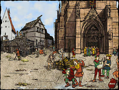 Recht konventionell dagegen sind die thematischen Vorträge - z.B. "Kirche & Weltbild", "Haus & Familie" oder "Recht & Ordnung", die im Gegensatz zum Stadtrundgang nur ein An- und wieder Zurückklicken erlauben. Gut gemacht aber sind die interaktiven Teile ("Aktivitäten"), in denen der Nutzer sich selbst in spätmittelalterlichen Tätigkeiten wie Buchdruck, Hausbau oder Betteln versuchen kann. Auf einer eigenen "Aktivitätentafel" sind die 22 Möglichkeiten aufgelistet und nach Erfolg entsprechend abgedunkelt dargestellt. Fehlt eigentlich nur noch am Ende eine Urkunde über den Lernerfolg - als Aufnahme in das Bürgerrecht der virtuellen Bürgergemeinde etwa. |