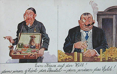 Beschreibe die Absicht, mit der der arme Hausierers und der Finanzier gegenübergestellt werden