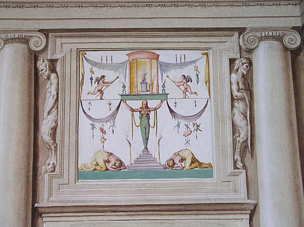 Fresken von Gualtiero Padovana Wandfeld mit Grotesken-Malerei auf weißem Grund