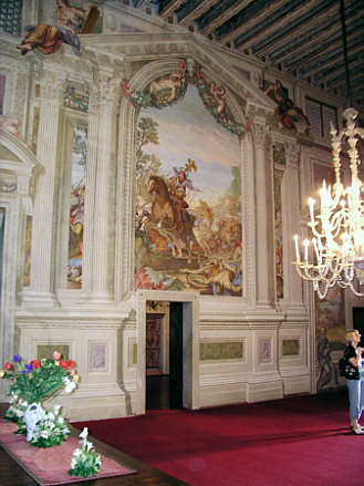 Schein-Ädikula mit einem Fresko von Gianbattista Zelotti "Der Raub der Europa"