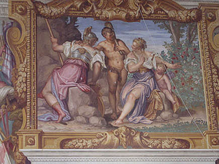 Fresko von Gianbattista Zelotti über der Eingangstür "Herkules am Scheideweg"