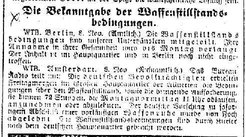 Die Bekanntgabe der Waffenstillstands- bedingungen