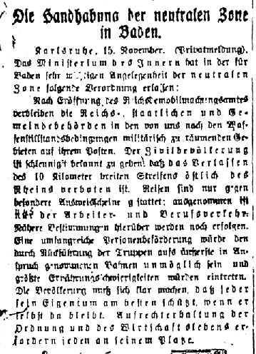 Neue Badische Landeszeitung, Samstag, 16. November 1918 - Morgen-Ausgabe