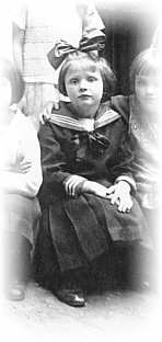 | Klassisches Kindheitsmuster: Schleife im Haar, Kleid im Matrosenstil (kommt aus der Flottenverehrung des Kaiserreiches)