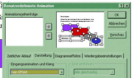 | Probieren Sie ruhig alle Animationseffekte durch. Lassen Sie