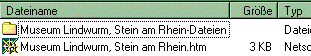 von dem Browser ab, den Sie verwenden. Wir gehen in beiden Beispielen davonaus, dass Sie die Seite, die Sie speichern wollen, bereits im Browser geladen haben. Wir nehmen als Beispiel die Seite "Museum Lindwurm, Stein am Rhein" der Landeskunde am Oberrhein (Adresse: http://www.zum.de/Faecher/G/BW/Landeskunde/rhein/kultur/museen/lindwurm/index.htm) (zum Laden bitte hier klicken) |