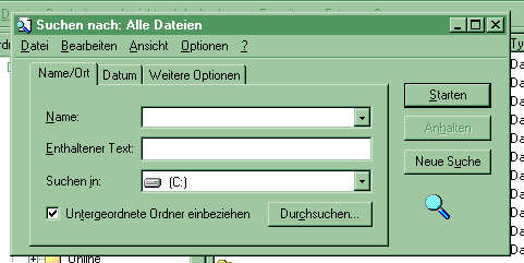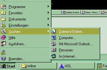 | Startmenü | Im Startmenü finden Sie die Option "Suchen"