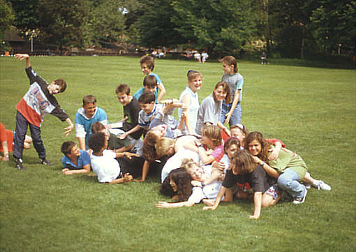 Warum nicht mal die Klasse so fotografieren, wie sie in der harten Realität des Schulalltags ist - als Sauhaufen ? |