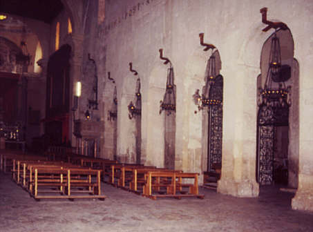 Mittelschiff nach Norden mit den in die alte Cellawand eingebrochenen Arkaden der frühchristlichen Basilika